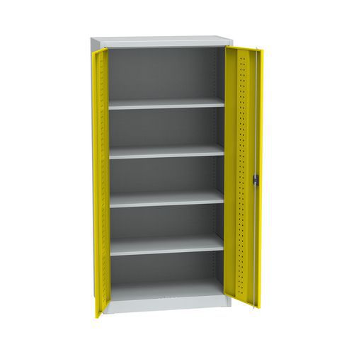 Metalowe szafy warsztatowe, 4 półki, 195 x 95 x 50 cm - Metalowa szafa warsztatowa, 4 półki, 195 x 95 x 50 cm, jasnoszara/żółta
