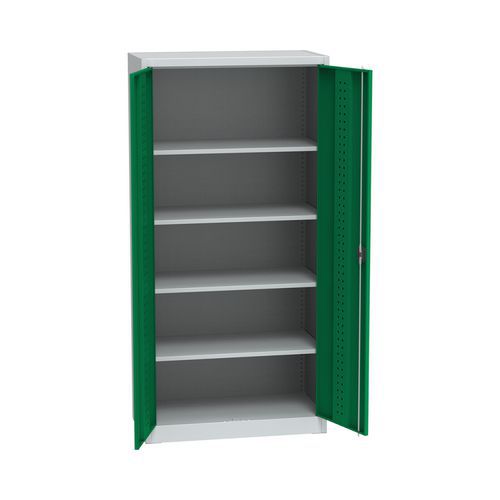 Metalowe szafy warsztatowe, 4 półki, 195 x 95 x 50 cm - Metalowa szafa warsztatowa, 4 półki, 195 x 95 x 50 cm, szara/zielona