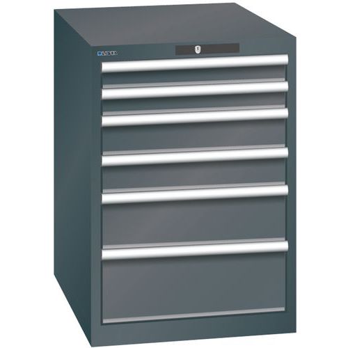 Szafki warsztatowe LISTA z szufladami, 564x725x800 mm, 4, 5, 6 lub 7 szuflad - Szafka warsztatowa z szufladami LISTA, 564x725x800 mm, 6 szuflad, ciemn